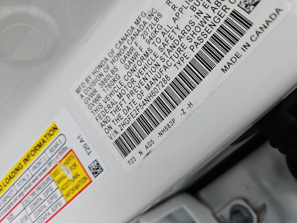 HondaTrue Certified Certified, Blk Clth Cloth, 4-Wheel Disc Brakes, 8 Speakers, ABS brakes, Adaptive Cruise Control: Adaptive Cruise Control (ACC) with Low-Speed Follow, Air Conditioning, Alloy wheels, AM/FM radio, Apple CarPlay/Android Auto, Auto High-beam Headlights, Automatic temperature control, Brake assist, Bumpers: body-color, Cloth Seat Trim, Delay-off headlights, Driver door bin, Driver vanity mirror, Dual front impact airbags, Dual front side impact airbags, Electronic Stability Control, Emergency communication system: HondaLink, Exterior Parking Camera Rear, Forward collision: Collision Mitigation Braking System (CMBS) + FCW mitigation, Four wheel independent suspension, Front anti-roll bar, Front Bucket Seats, Front Center Armrest, Front reading lights, Fully automatic headlights, Illuminated entry, Knee airbag, Leather Shift Knob, Leather steering wheel, Low tire pressure warning, Occupant sensing airbag, Outside temperature display, Overhead airbag, Panic alarm, Passenger door bin, Passenger vanity mirror, Power door mirrors, Power steering, Power windows, Radio data system, Radio: 180-Watt AM/FM Audio System, Rear anti-roll bar, Rear side impact airbag, Rear window defroster, Remote keyless entry, Security system, Speed control, Speed-sensing steering, Steering wheel mounted audio controls, Tachometer, Telescoping steering wheel, Tilt steering wheel, Traction control, Trip computer, and Wheels: 18" Gloss Black Alloy. Blk Clth Cloth.