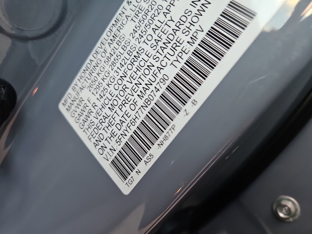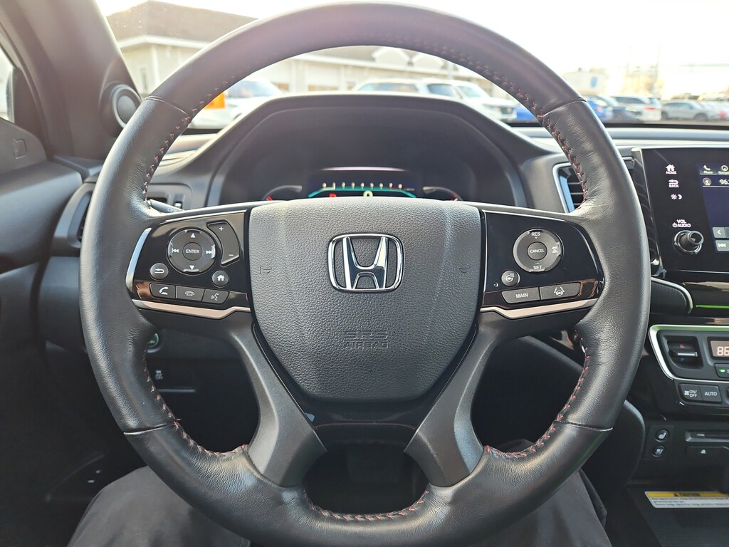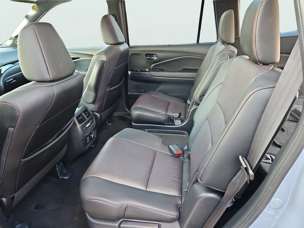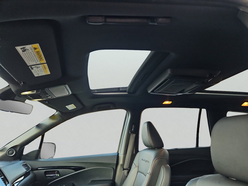 AWD, 10 Speakers, 3rd row seats: split-bench, 4-Wheel Disc Brakes, 4.33 Axle Ratio, A/V remote: CabinControl, ABS brakes, Air Conditioning, Alloy wheels, AM/FM radio: SiriusXM, Apple CarPlay/Android Auto, Auto High-beam Headlights, Auto-dimming door mirrors, Auto-dimming Rear-View mirror, Automatic temperature control, Blind Spot Information (BSI) System warning, Brake assist, Bumpers: body-color, Compass, Delay-off headlights, Driver door bin, Driver vanity mirror, Dual front impact airbags, Dual front side impact airbags, Electronic Stability Control, Emergency communication system: HondaLink, Exterior Parking Camera Rear, Forward collision: Collision Mitigation Braking System (CMBS) + FCW mitigation, Four wheel independent suspension, Front anti-roll bar, Front Bucket Seats, Front Center Armrest, Front dual zone A/C, Front fog lights, Front reading lights, Fully automatic headlights, Garage door transmitter: HomeLink, Headphones, Heated & Ventilated Front Bucket Seats, Heated door mirrors, Heated front seats, Heated rear seats, Heated steering wheel, Illuminated entry, Lane departure: Lane Keeping Assist System (LKAS) active, Low tire pressure warning, Memory seat, Navigation system: Honda Satellite-Linked Navigation System, Occupant sensing airbag, Outside temperature display, Overhead airbag, Overhead console, Panic alarm, Passenger door bin, Passenger vanity mirror, Perforated Leather Seat Trim, Power door mirrors, Power driver seat, Power Liftgate, Power moonroof, Power passenger seat, Power steering, Power windows, Radio data system, Radio: 590-Watt Premium Audio System, Rain sensing wipers, Rear air conditioning, Rear anti-roll bar, Rear audio controls, Rear reading lights, Rear window defroster, Rear window wiper, Reclining 3rd row seat, Remote keyless entry, Roof rack: rails only, Security system, Speed control, Speed-sensing steering, Speed-Sensitive Wipers, Split folding rear seat, Spoiler, Steering wheel mounted audio controls, Tachometer, Telescoping steering wheel, Tilt steering wheel, Traction control, Trip computer, Turn signal indicator mirrors, Variably intermittent wipers, Ventilated front seats, and Wheels: 20" Exclusive Gloss Black Alloy. AWD.