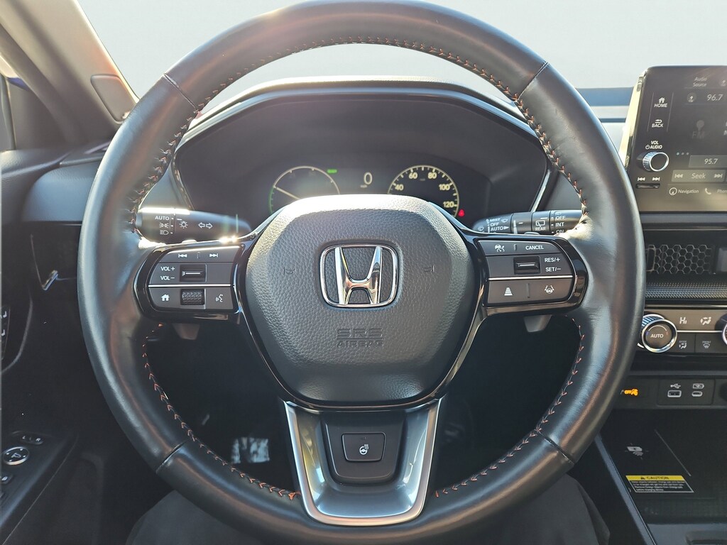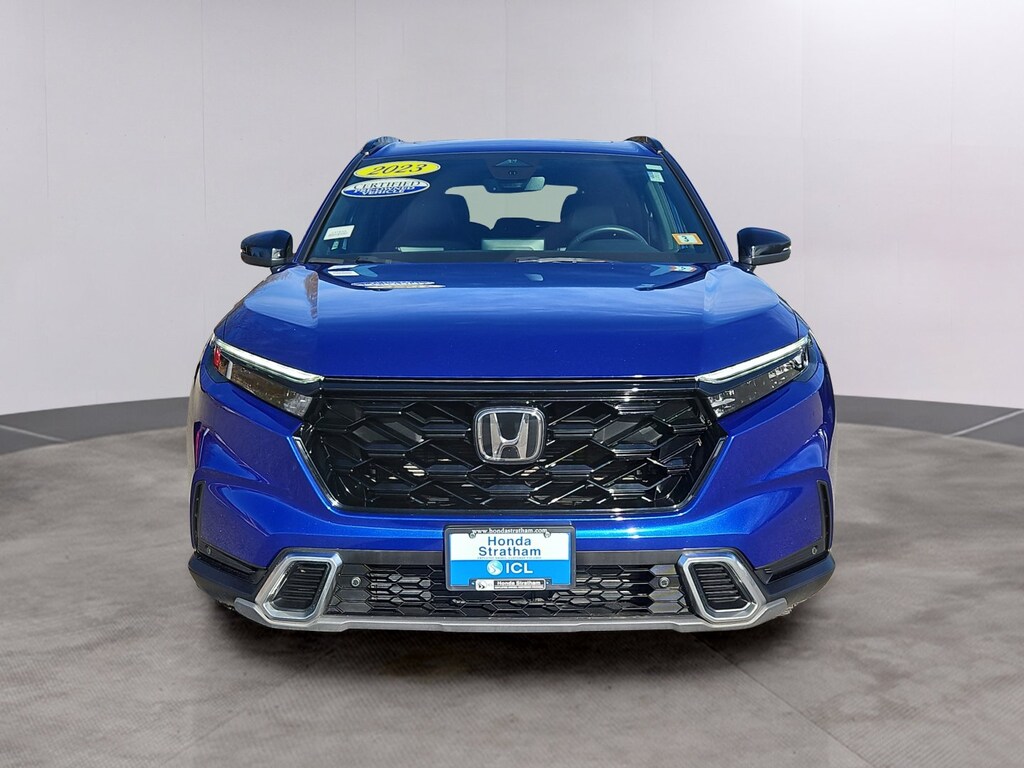 Still Night Pearl 2023 Honda CR-V Hybrid Sport Touring 2.0L I4 DOHC 16V eCVT AWD HondaTrue Certified Certified, 2.0L I4 DOHC 16V, 12 Speakers, 4-Wheel Disc Brakes, 4.438 Axle Ratio, ABS brakes, Adaptive Cruise Control: Adaptive Cruise Control (ACC) with Low-Speed Follow, Air Conditioning, Alloy wheels, AM/FM radio: SiriusXM, Auto High-beam Headlights, Auto-dimming Rear-View mirror, Automatic temperature control, Blind Spot Information (BSI) System warning, Brake assist, Bumpers: body-color, Compass, Delay-off headlights, Driver door bin, Driver vanity mirror, Dual front impact airbags, Dual front side impact airbags, Electronic Stability Control, Exterior Parking Camera Rear, Four wheel independent suspension, Front anti-roll bar, Front Bucket Seats, Front Center Armrest, Front dual zone A/C, Front reading lights, Fully automatic headlights, Heated door mirrors, Heated Front Bucket Seats w/Driver Memory, Heated front seats, Heated steering wheel, Illuminated entry, Knee airbag, Leather Seat Trim, Leather Shift Knob, Leather steering wheel, Low tire pressure warning, Memory seat, Navigation system: Honda Satellite-Linked Navigation System, Occupant sensing airbag, Outside temperature display, Overhead airbag, Overhead console, Panic alarm, Passenger door bin, Passenger vanity mirror, Power door mirrors, Power driver seat, Power Liftgate, Power moonroof, Power passenger seat, Power steering, Power windows, Radio data system, Radio: Bose Premium Sound System w/Navigation, Rain sensing wipers, Rear anti-roll bar, Rear reading lights, Rear seat center armrest, Rear side impact airbag, Rear window defroster, Rear window wiper, Remote keyless entry, Security system, Speed control, Speed-sensing steering, Speed-Sensitive Wipers, Split folding rear seat, Spoiler, Steering wheel mounted audio controls, Telescoping steering wheel, Tilt steering wheel, Traction control, Trip computer, Turn signal indicator mirrors, Variably intermittent wipers, Wheels: 19" Berlina Black Alloy, and Wireless Apple CarPlay/Wireless Android Auto. 2.0L I4 DOHC 16V.