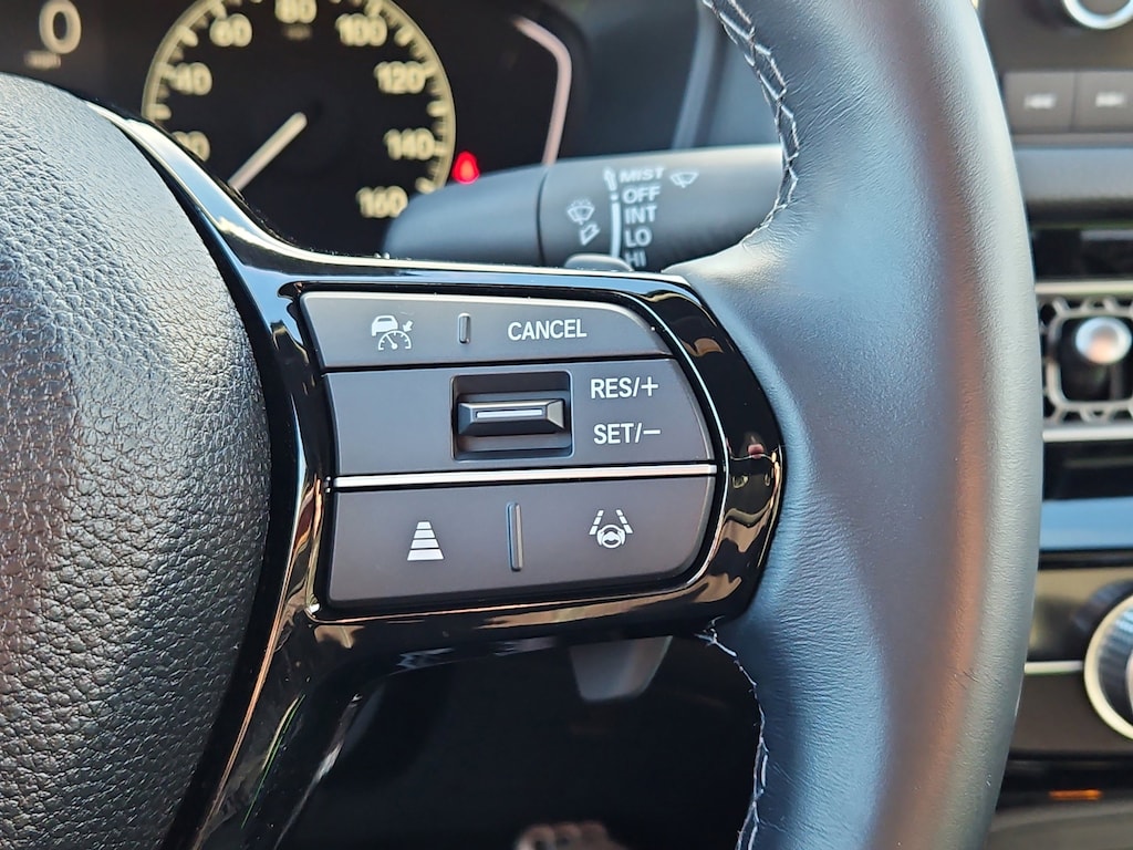 Black Cloth, 4-Wheel Disc Brakes, 8 Speakers, ABS brakes, Adaptive Cruise Control: Adaptive Cruise Control (ACC) with Low-Speed Follow, Air Conditioning, Alloy wheels, AM/FM radio, Apple CarPlay/Android Auto, Auto High-beam Headlights, Automatic temperature control, Brake assist, Bumpers: body-color, Cloth Seat Trim, Delay-off headlights, Driver door bin, Driver vanity mirror, Dual front impact airbags, Dual front side impact airbags, Electronic Stability Control, Emergency communication system: HondaLink, Exterior Parking Camera Rear, Four wheel independent suspension, Front anti-roll bar, Front Bucket Seats, Front Center Armrest, Front reading lights, Fully automatic headlights, Illuminated entry, Knee airbag, Leather Shift Knob, Leather steering wheel, Low tire pressure warning, Occupant sensing airbag, Outside temperature display, Overhead airbag, Panic alarm, Passenger door bin, Passenger vanity mirror, Power door mirrors, Power steering, Power windows, Radio data system, Radio: 180-Watt Audio System w/8 Speakers, Rear anti-roll bar, Rear side impact airbag, Rear window defroster, Remote keyless entry, Security system, Speed control, Speed-sensing steering, Steering wheel mounted audio controls, Tachometer, Telescoping steering wheel, Tilt steering wheel, Traction control, Trip computer, and Wheels: 18" Gloss Black Alloy. Black Cloth.