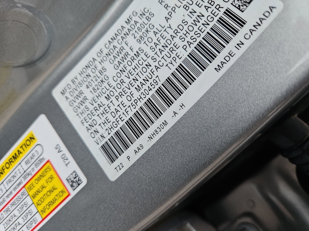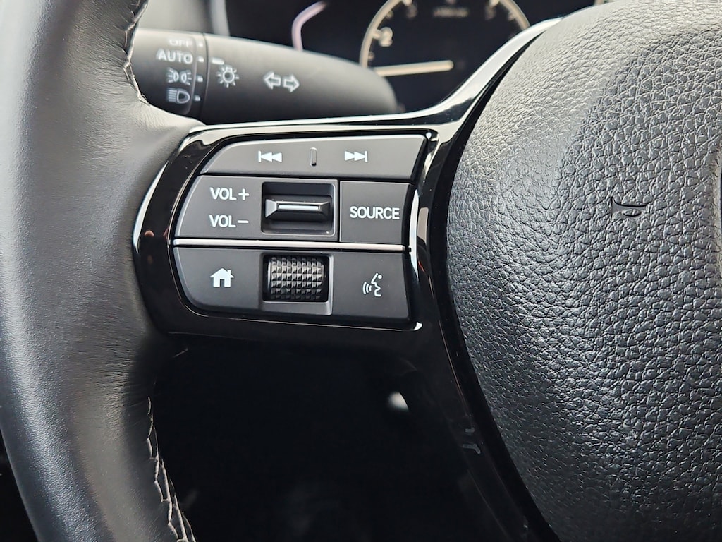 Blk Clth Cloth, 4-Wheel Disc Brakes, 8 Speakers, ABS brakes, Adaptive Cruise Control: Adaptive Cruise Control (ACC) with Low-Speed Follow, Air Conditioning, Alloy wheels, AM/FM radio, Apple CarPlay/Android Auto, Auto High-beam Headlights, Automatic temperature control, Brake assist, Bumpers: body-color, Cloth Seat Trim, Delay-off headlights, Driver door bin, Driver vanity mirror, Dual front impact airbags, Dual front side impact airbags, Electronic Stability Control, Emergency communication system: HondaLink, Exterior Parking Camera Rear, Four wheel independent suspension, Front anti-roll bar, Front Bucket Seats, Front Center Armrest, Front dual zone A/C, Front reading lights, Fully automatic headlights, Heated door mirrors, Heated Front Bucket Seats, Heated front seats, Illuminated entry, Knee airbag, Leather Shift Knob, Leather steering wheel, Low tire pressure warning, Occupant sensing airbag, Outside temperature display, Overhead airbag, Overhead console, Panic alarm, Passenger door bin, Passenger vanity mirror, Power door mirrors, Power moonroof, Power steering, Power windows, Radio data system, Radio: 180-Watt Audio System w/8 Speakers, Rear anti-roll bar, Rear seat center armrest, Rear side impact airbag, Rear window defroster, Remote keyless entry, Security system, Speed control, Speed-sensing steering, Split folding rear seat, Steering wheel mounted audio controls, Tachometer, Telescoping steering wheel, Tilt steering wheel, Traction control, Trip computer, Variably intermittent wipers, and Wheels: 17" Alloy w/Gloss Black Inserts. Blk Clth Cloth.