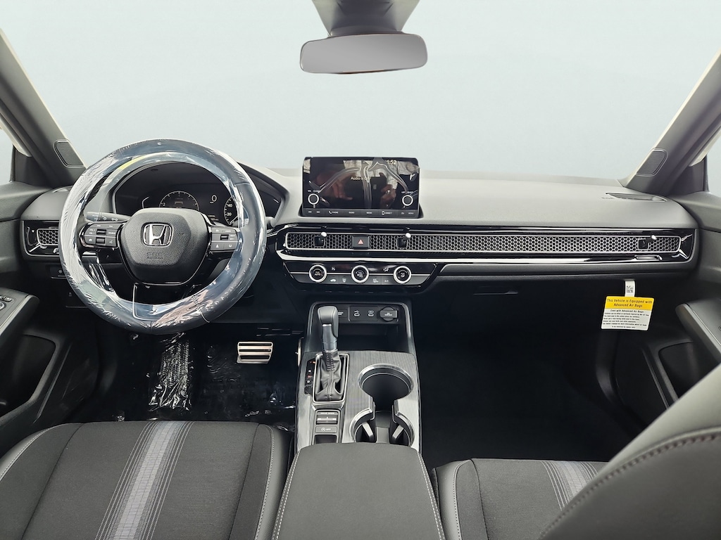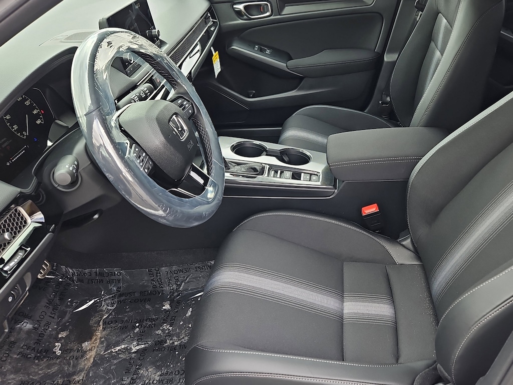 Platinum White Pearl 2025 Honda Civic Sport FWD CVT 2.0L I4 DOHC 16V Blk Clth Artificial Leather.