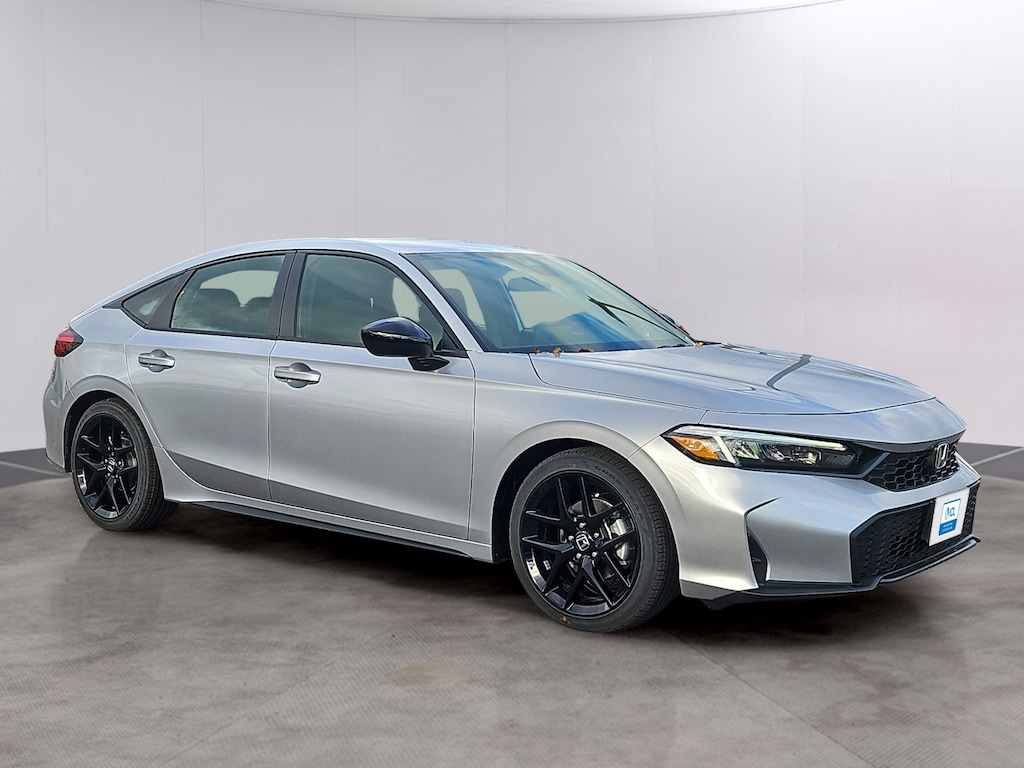 Solar Silver Metallic 2026 Honda Civic Sport FWD CVT 2.0L I4 DOHC 16V Blk Clth/Lthette Artificial Leather.